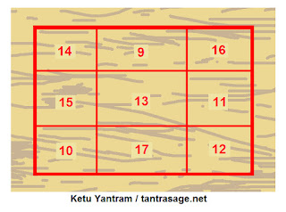 Now I am writing about the making procedure Ketu Yantram. The maker of this Yantram will take a bath in the morning of a Shubh Din and will wear clean any Black colored dress, sit on a Black mattress, in Shubh Muhurat faced towards North or East direction.