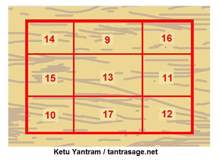 Now I am writing about the making procedure Ketu Yantram. The maker of this Yantram will take a bath in the morning of a Shubh Din and will wear clean any Black colored dress, sit on a Black mattress, in Shubh Muhurat faced towards North or East direction.